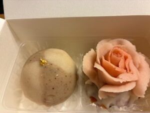 「今回はジョシっぽいのにしてみました♡」 —-ワタシタチだけにわかる笑い— イヴらしく、金箔も。 いつも通りに上品なおはぎを、今回もご馳走さまでした。
