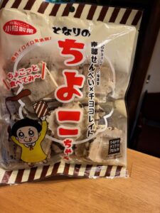 ともだちがくれた 「三陸行ったときに見つけたっ!絶対キミにあげようって!」 ——もの凄い親近感—– 南部せんべい好き チョコも好き 封を切るのが惜しい気がして も少し眺めてからいただくことにしよう